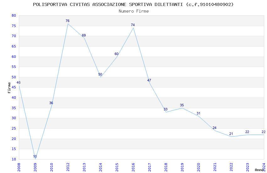 | 2012 | 76 | 2.388,50 | 31,43 | 16.182 | 298 | 62 | 4 |