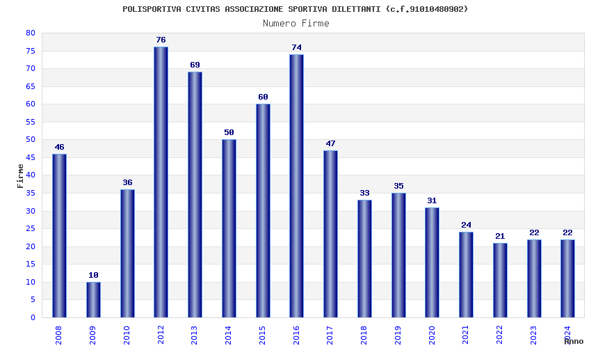 | 2016 | 74 | 2.253,40 | 30,45 | 21.099 | 408 | 97 | 4 |