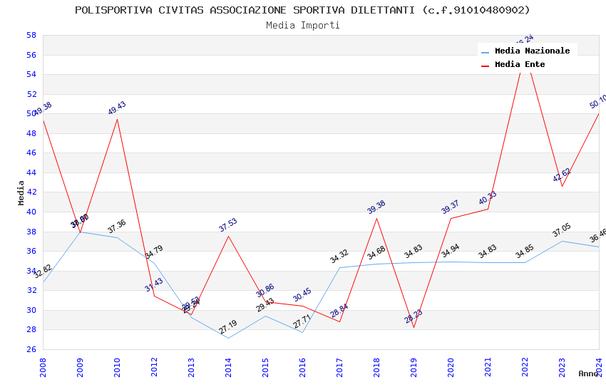 | Anno | Firme | Importi | Media | Naz. | Reg. | Prov. | Comu. |