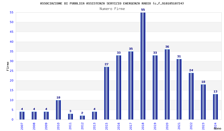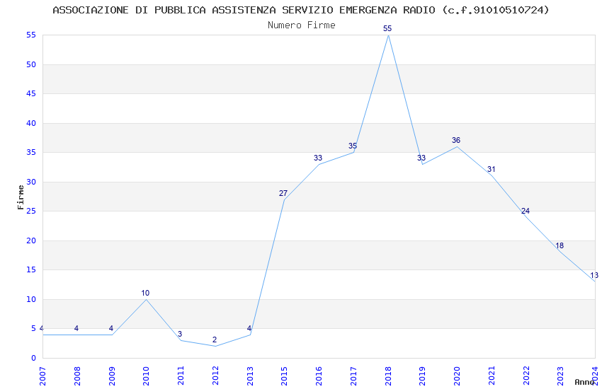 | 2018 | 55 | 729,04 | 13,26 | 39.891 | 1.891 | 617 | 2 |