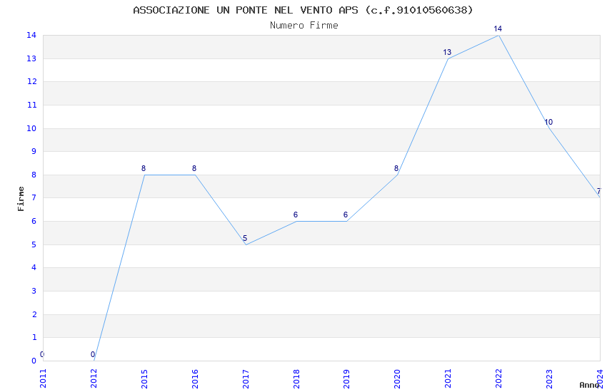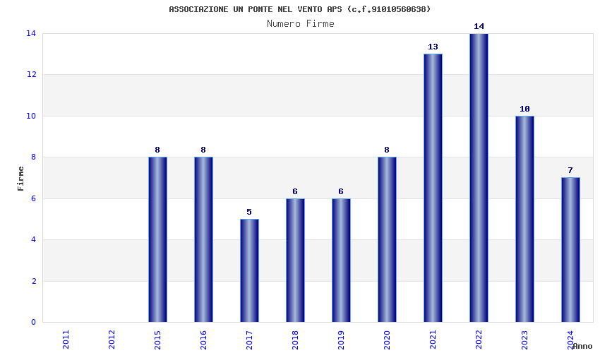 | Anno | Firme | Importi | Media | Naz. | Reg. | Prov. | Comu. |