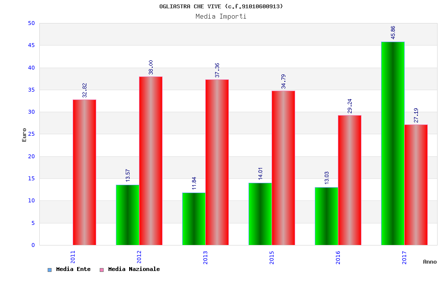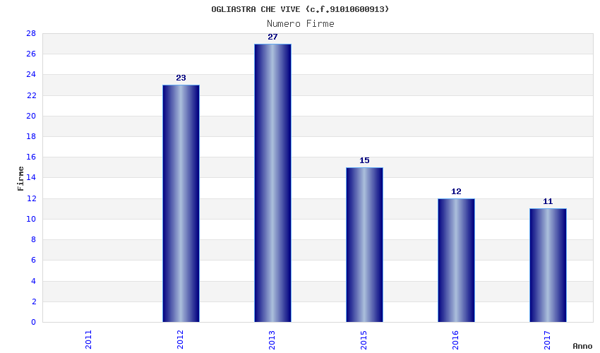 | Anno | Firme | Importi | Media | Naz. | Reg. | Prov. | Comu. |