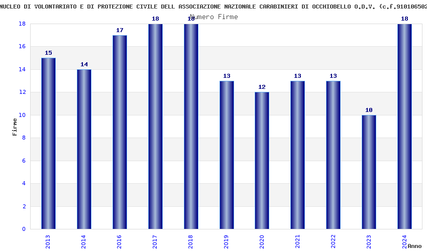 | Anno | Firme | Importi | Media | Naz. | Reg. | Prov. | Comu. |
