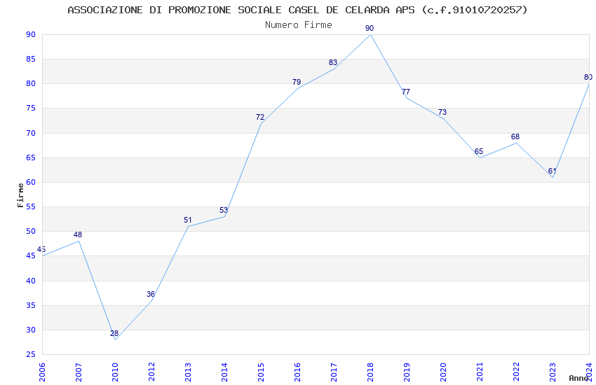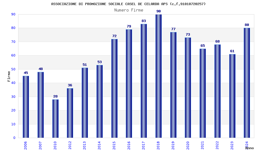 | 2018 | 90 | 1.765,76 | 19,62 | 25.627 | 2.399 | 130 | 13 |