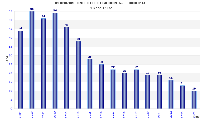| 2009 | 44 | 4.163,78 | 94,63 | 10.185 | 298 | 26 | 10 |