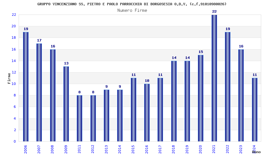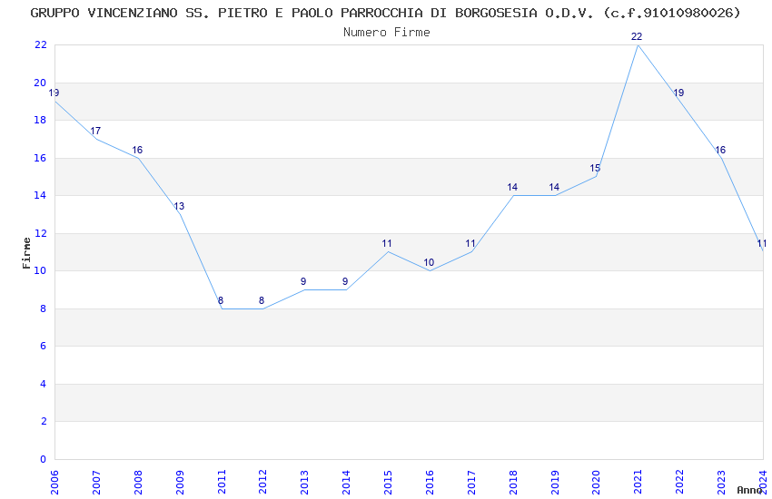 | 2022 | 19 | 848,64 | 44,67 | 37.462 | 3.141 | 134 | 13 |
