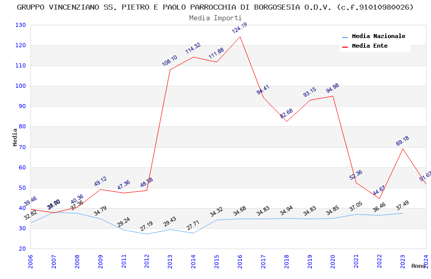 | Anno | Firme | Importi | Media | Naz. | Reg. | Prov. | Comu. |