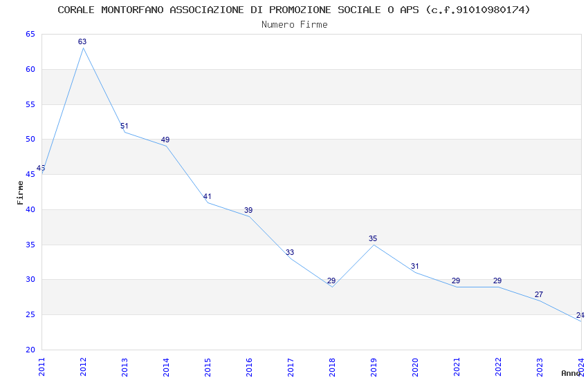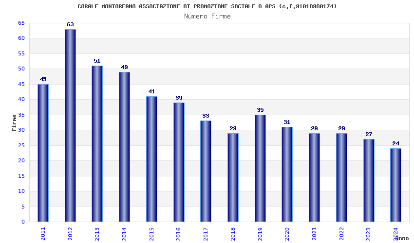 | Anno | Firme | Importi | Media | Naz. | Reg. | Prov. | Comu. |