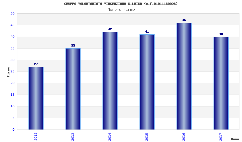 | Anno | Firme | Importi | Media | Naz. | Reg. | Prov. | Comu. |