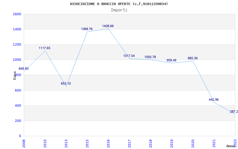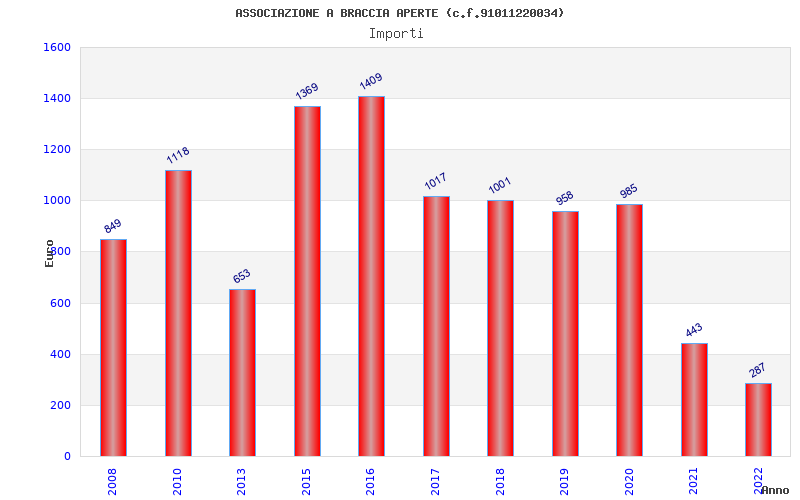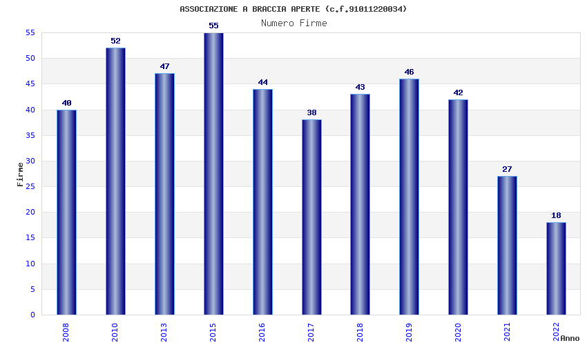 | Anno | Firme | Importi | Media | Naz. | Reg. | Prov. | Comu. |
