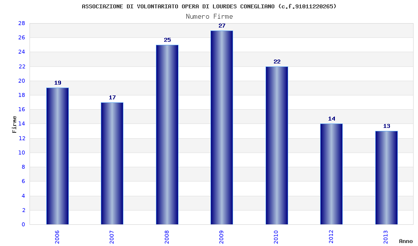 | Anno | Firme | Importi | Media | Naz. | Reg. | Prov. | Comu. |