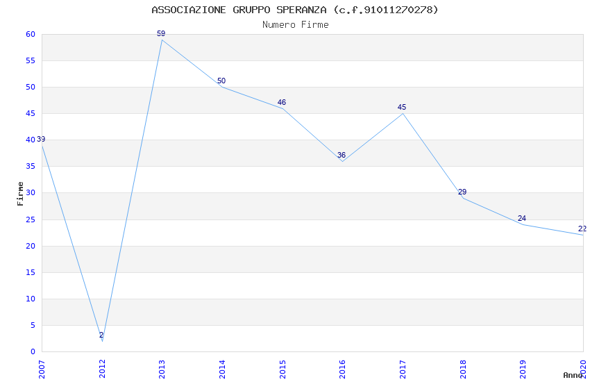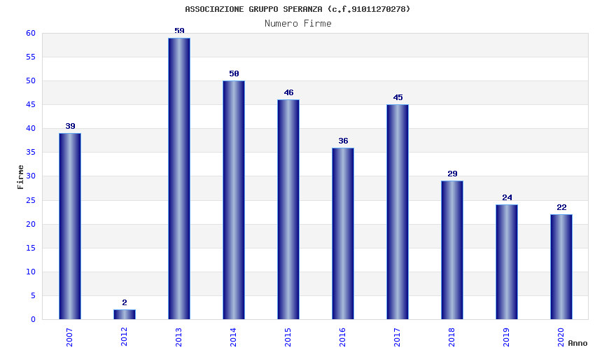 | Anno | Firme | Importi | Media | Naz. | Reg. | Prov. | Comu. |