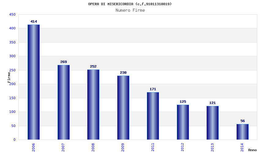 | Anno | Firme | Importi | Media | Naz. | Reg. | Prov. | Comu. |