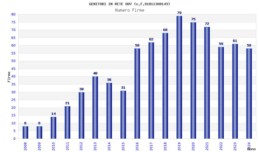 | Anno | Firme | Importi | Media | Naz. | Reg. | Prov. | Comu. |