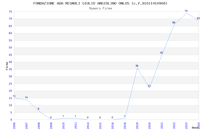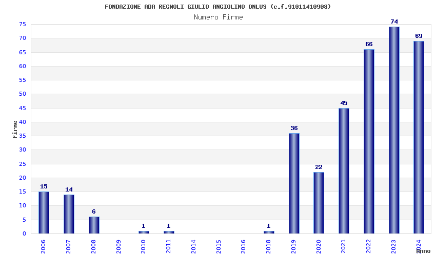| Anno | Firme | Importi | Media | Naz. | Reg. | Prov. | Comu. |