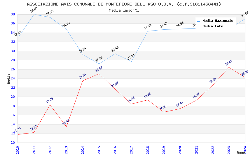 | Anno | Firme | Importi | Media | Naz. | Reg. | Prov. | Comu. |