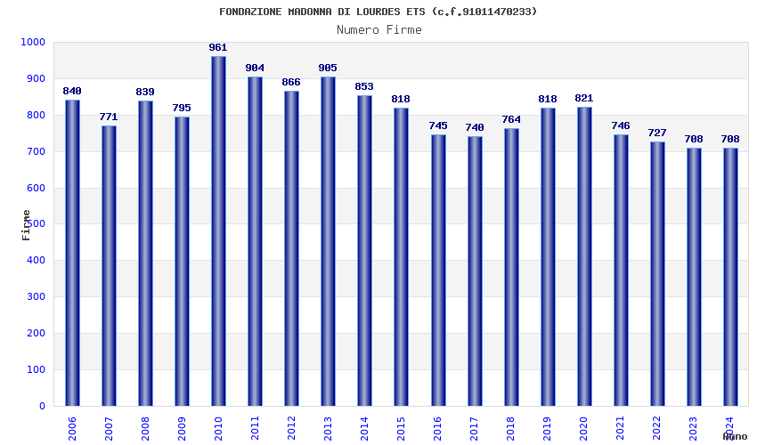 | Anno | Firme | Importi | Media | Naz. | Reg. | Prov. | Comu. |
