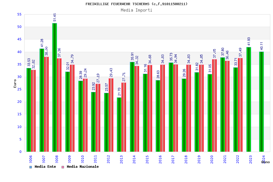 | Anno | Firme | Importi | Media | Naz. | Reg. | Prov. | Comu. |