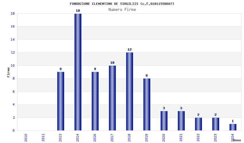 | Anno | Firme | Importi | Media | Naz. | Reg. | Prov. | Comu. |