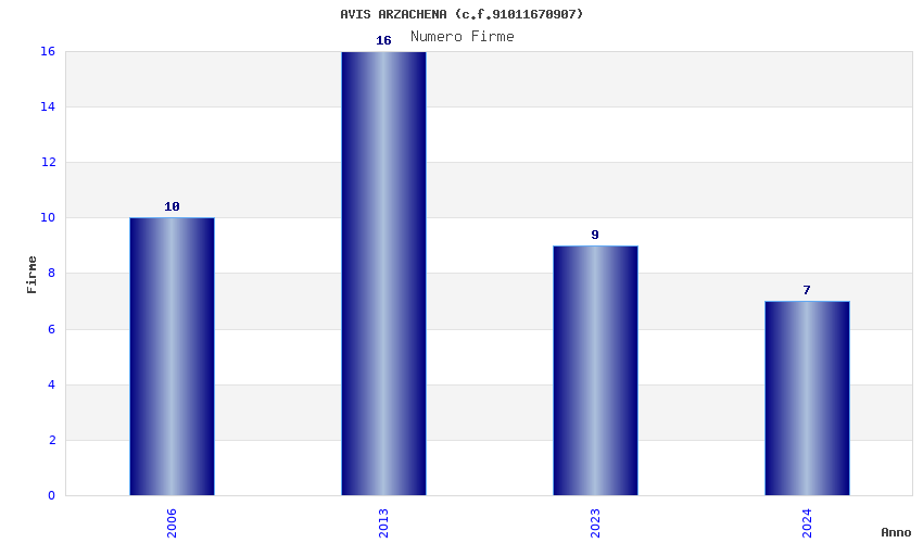 | Anno | Firme | Importi | Media | Naz. | Reg. | Prov. | Comu. |