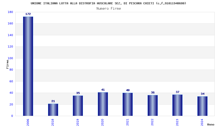 | Anno | Firme | Importi | Media | Naz. | Reg. | Prov. | Comu. |