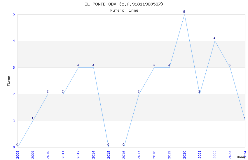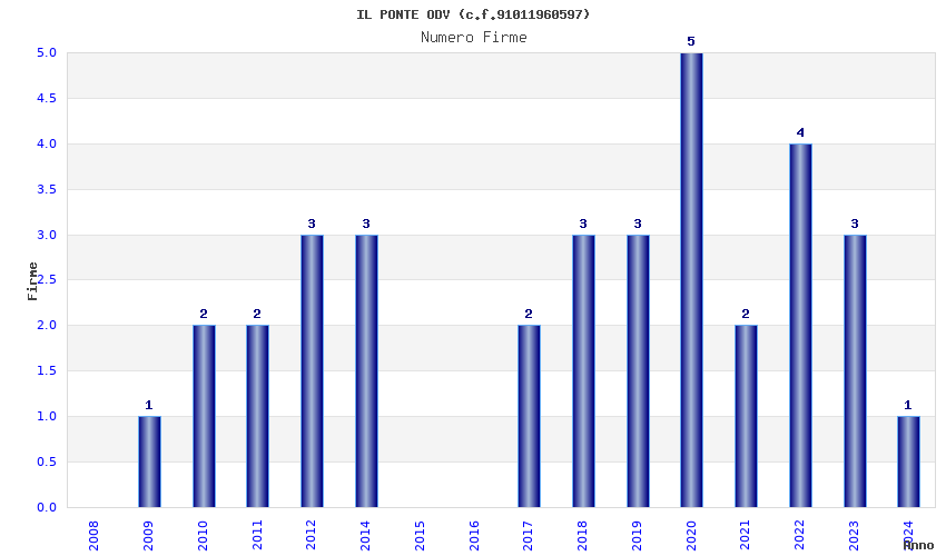 | Anno | Firme | Importi | Media | Naz. | Reg. | Prov. | Comu. |