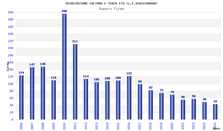 | Anno | Firme | Importi | Media | Naz. | Reg. | Prov. | Comu. |