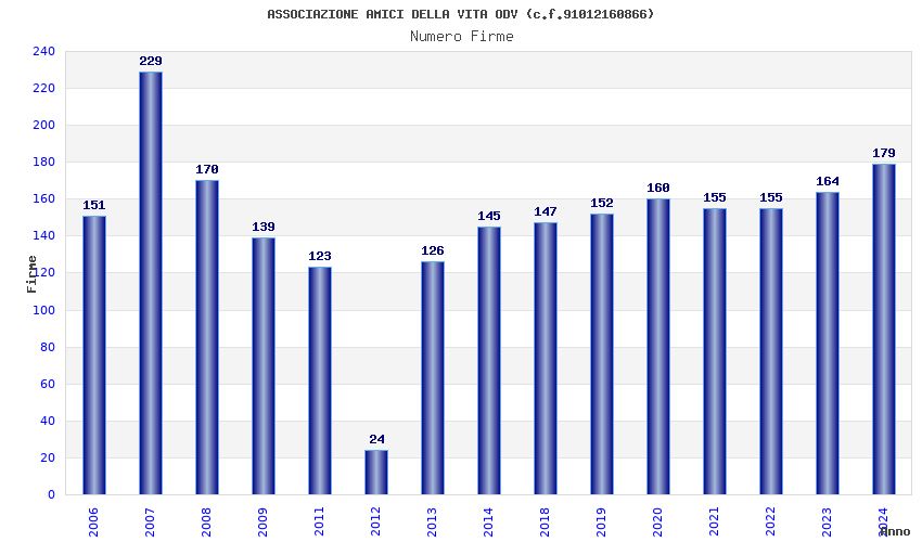 | Anno | Firme | Importi | Media | Naz. | Reg. | Prov. | Comu. |