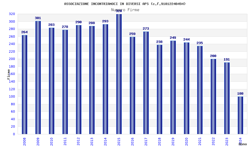 | Anno | Firme | Importi | Media | Naz. | Reg. | Prov. | Comu. |