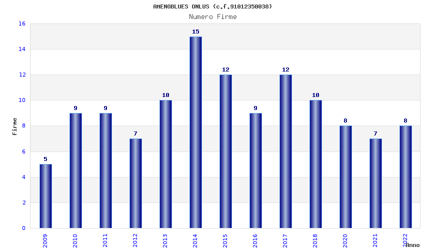 | Anno | Firme | Importi | Media | Naz. | Reg. | Prov. | Comu. |