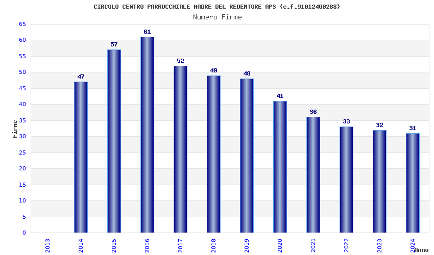 | 2016 | 61 | 1.764,75 | 28,93 | 24.510 | 2.328 | 527 | 1 |