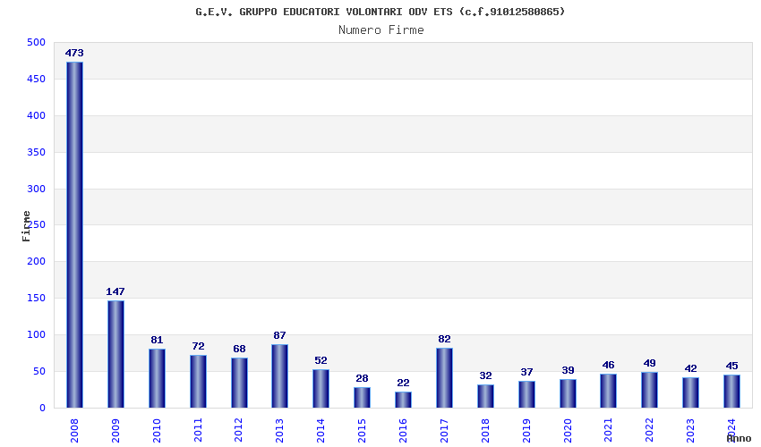 | Anno | Firme | Importi | Media | Naz. | Reg. | Prov. | Comu. |
