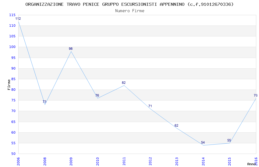 | 2016 | 76 | 5.384,23 | 70,85 | 10.203 | 927 | 53 | 33 |