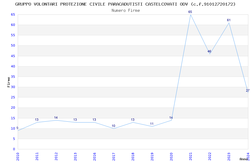 | 2021 | 65 | 1.077,86 | 16,58 | 34.931 | 7.300 | 960 | 3 |