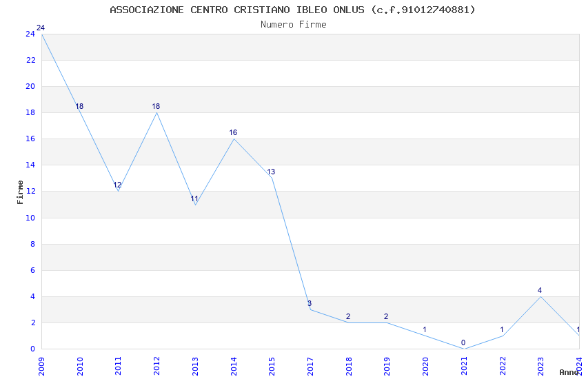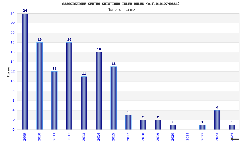 | Anno | Firme | Importi | Media | Naz. | Reg. | Prov. | Comu. |