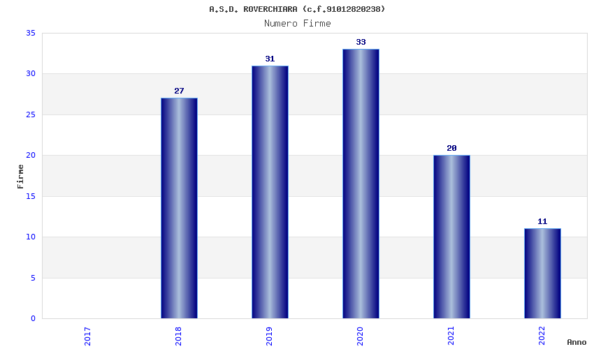 | Anno | Firme | Importi | Media | Naz. | Reg. | Prov. | Comu. |