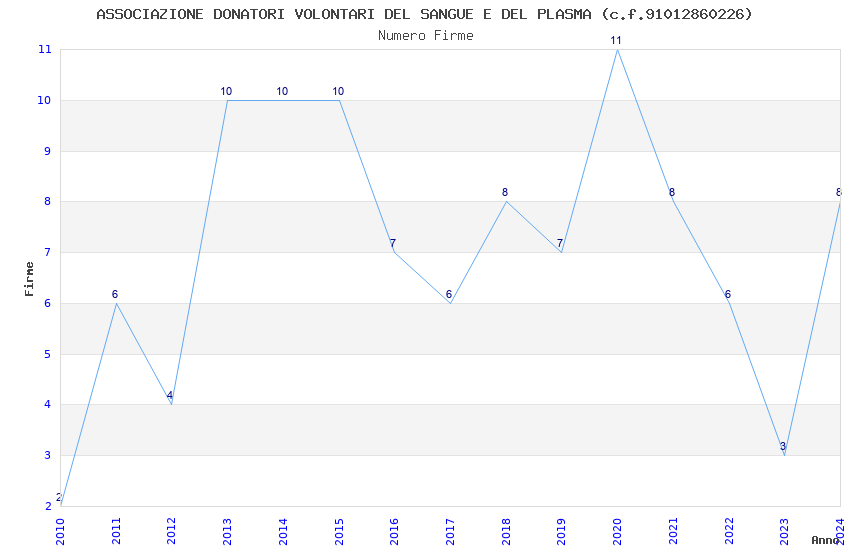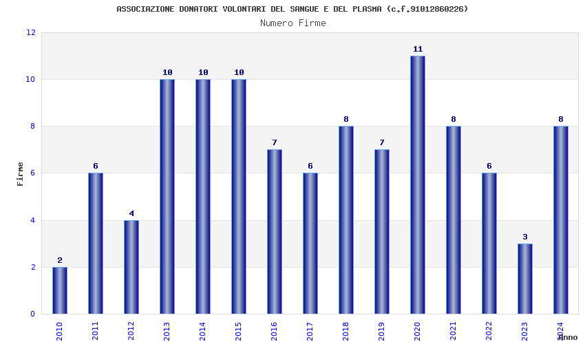| Anno | Firme | Importi | Media | Naz. | Reg. | Prov. | Comu. |