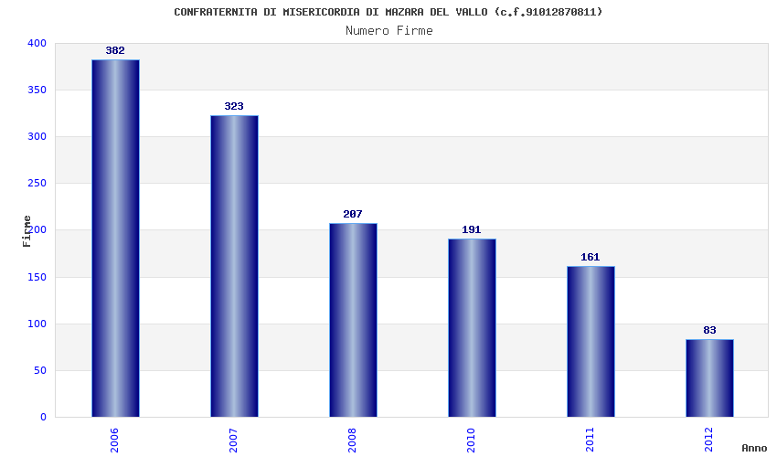 | Anno | Firme | Importi | Media | Naz. | Reg. | Prov. | Comu. |