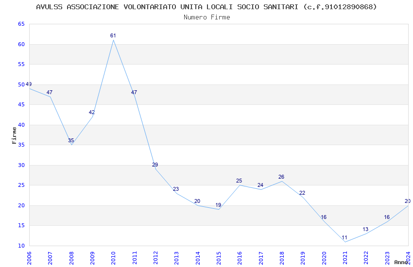 | 2010 | 61 | 1.308,16 | 21,45 | 20.958 | 1.197 | 69 | 8 |