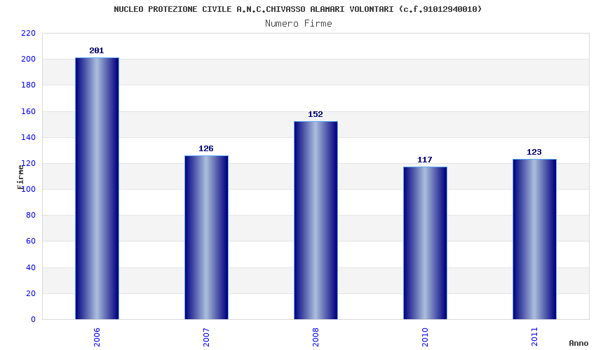 | Anno | Firme | Importi | Media | Naz. | Reg. | Prov. | Comu. |
