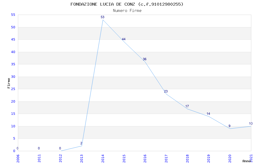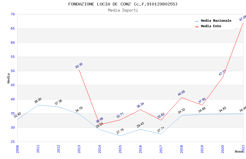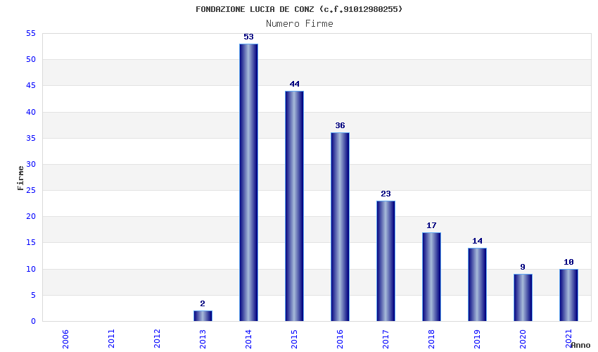 | Anno | Firme | Importi | Media | Naz. | Reg. | Prov. | Comu. |
