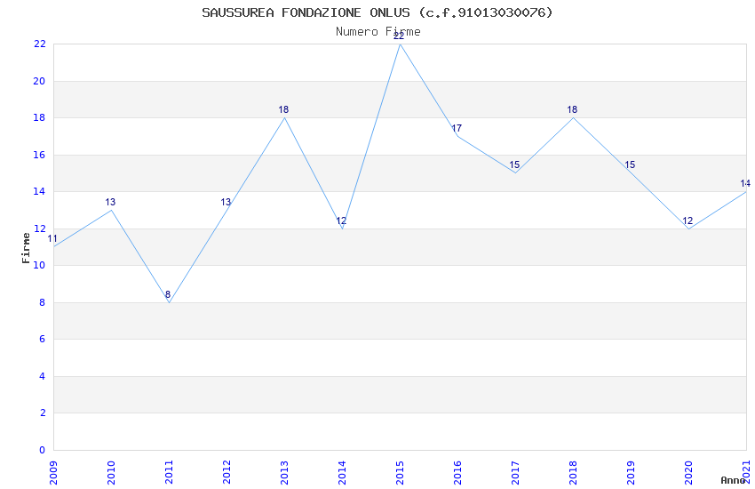| Anno | Firme | Importi | Media | Naz. | Reg. | Prov. | Comu. |