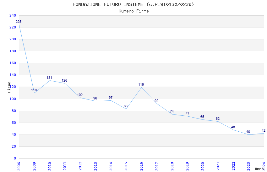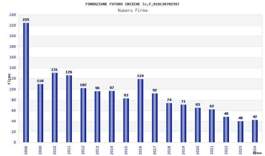 | Anno | Firme | Importi | Media | Naz. | Reg. | Prov. | Comu. |