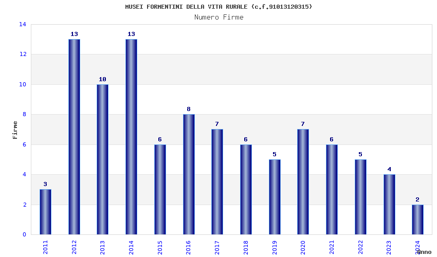 | Anno | Firme | Importi | Media | Naz. | Reg. | Prov. | Comu. |