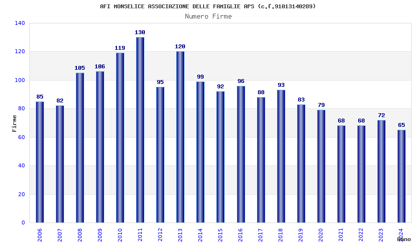 | Anno | Firme | Importi | Media | Naz. | Reg. | Prov. | Comu. |