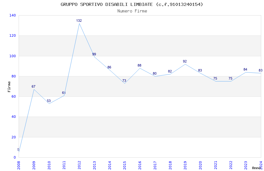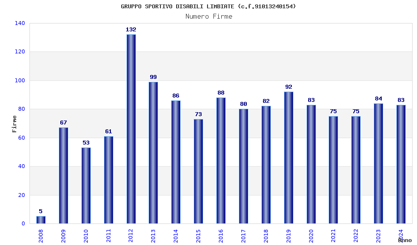 | Anno | Firme | Importi | Media | Naz. | Reg. | Prov. | Comu. |