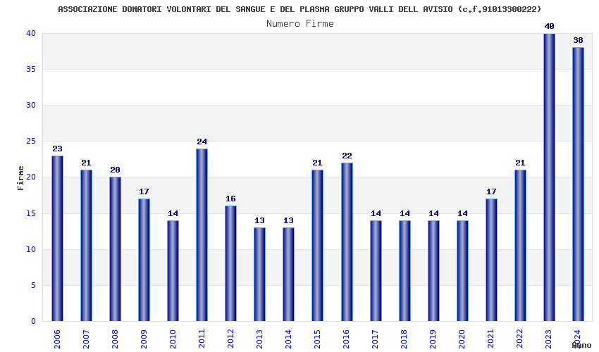 | Anno | Firme | Importi | Media | Naz. | Reg. | Prov. | Comu. |