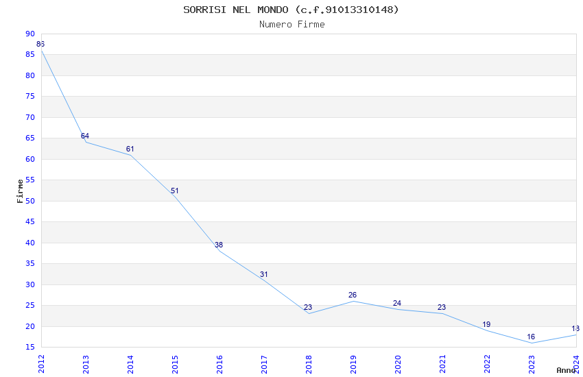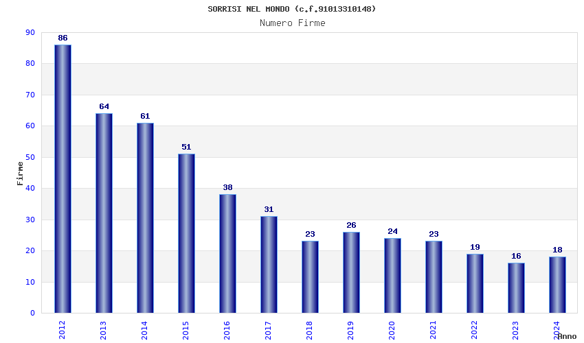 | Anno | Firme | Importi | Media | Naz. | Reg. | Prov. | Comu. |