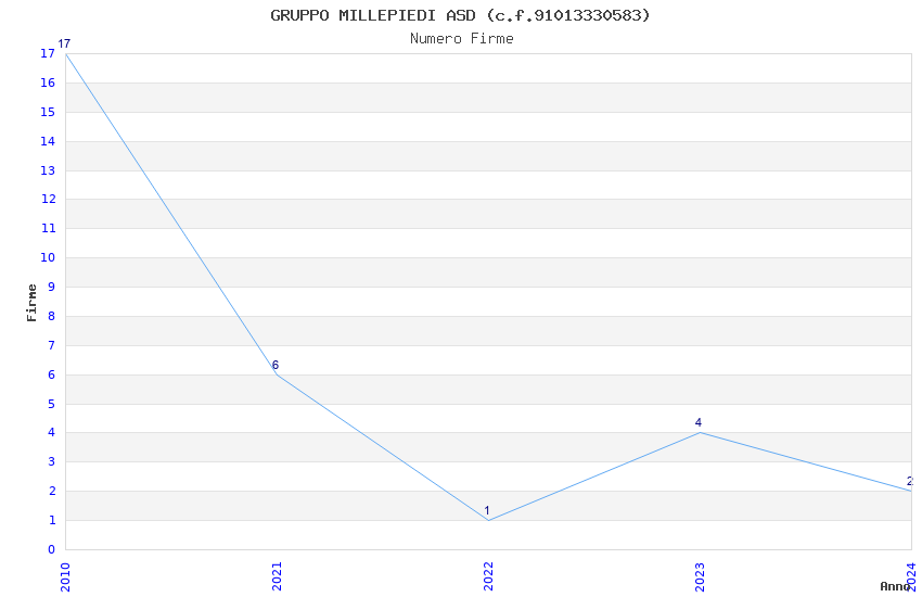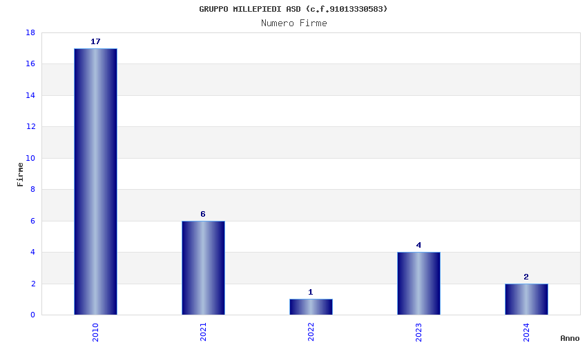 | Anno | Firme | Importi | Media | Naz. | Reg. | Prov. | Comu. |
