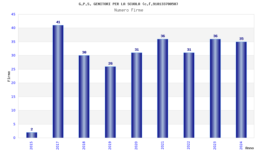 | Anno | Firme | Importi | Media | Naz. | Reg. | Prov. | Comu. |
